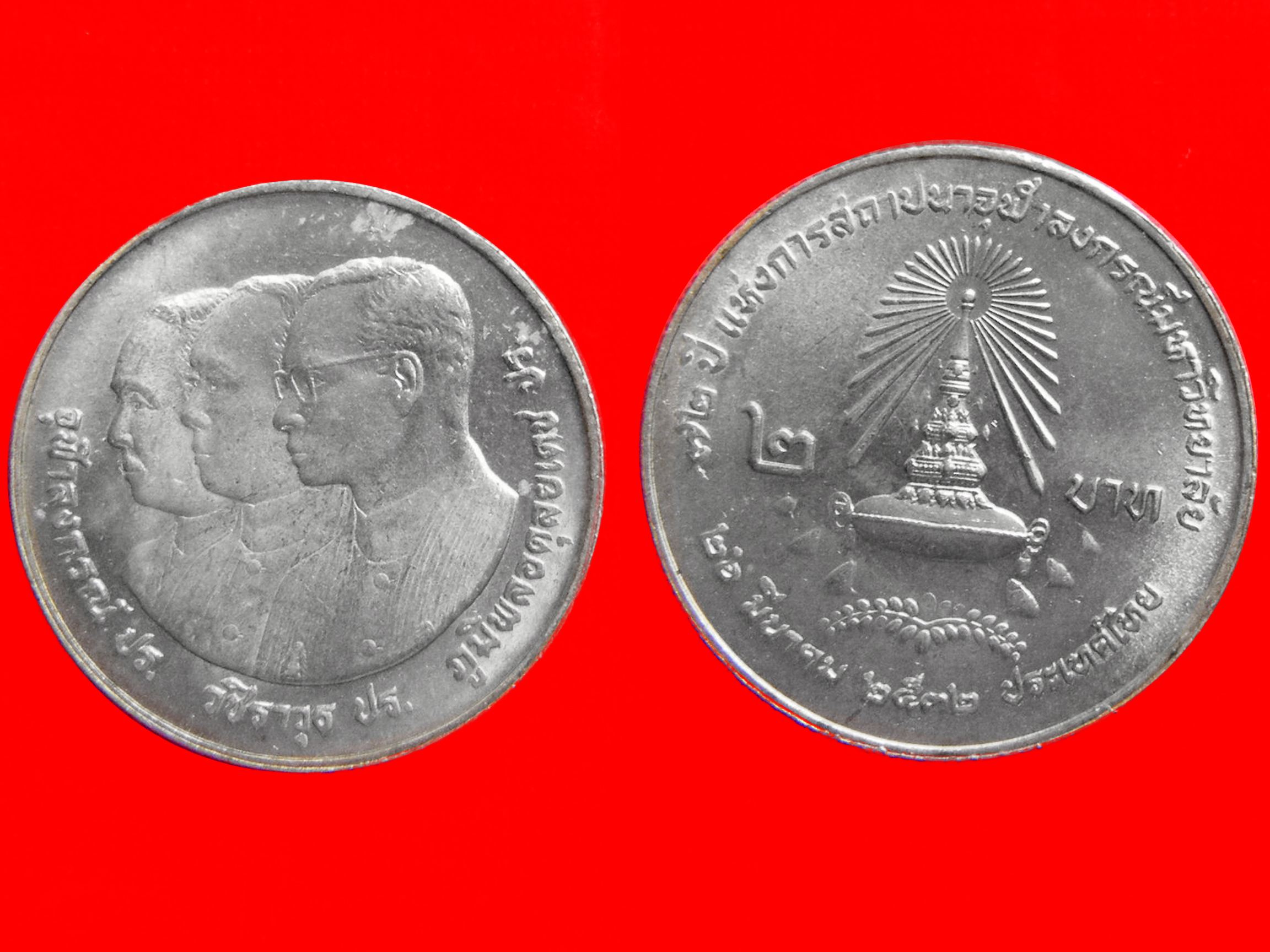| R862 เหรียญ 2 บาท รัชกาลที่5 รัชกาลที่9 โรงพยาบาลศิริราช 100ปี วันที่26 เดือนเมษายน พ.ศ.2531 ประเทศไทย โชว์ |